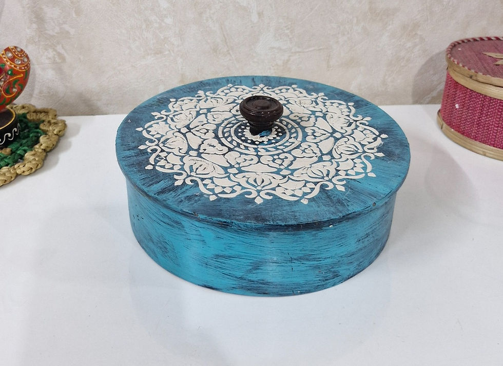 Chapati Box with Marble-Dust hand work Fusion Storage box Roti wooden ca