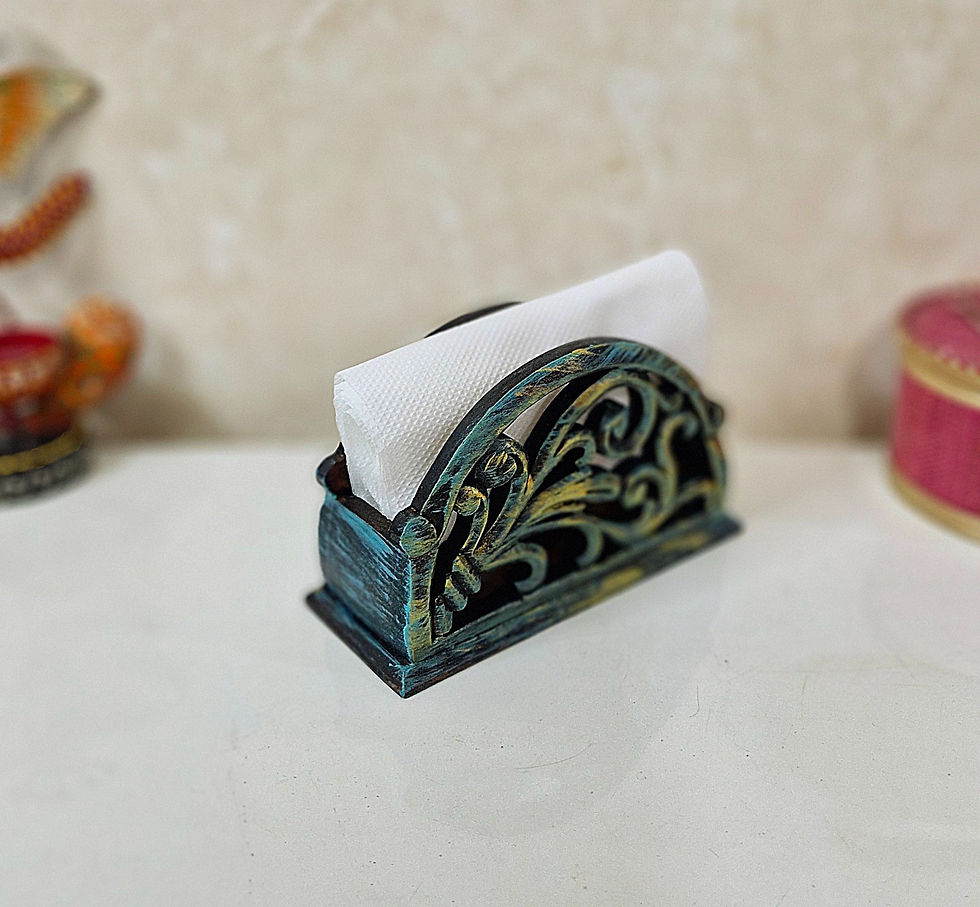 Napkin Holder Tissue Paper Holder Sheesham Wood hand carved Mint Vintage