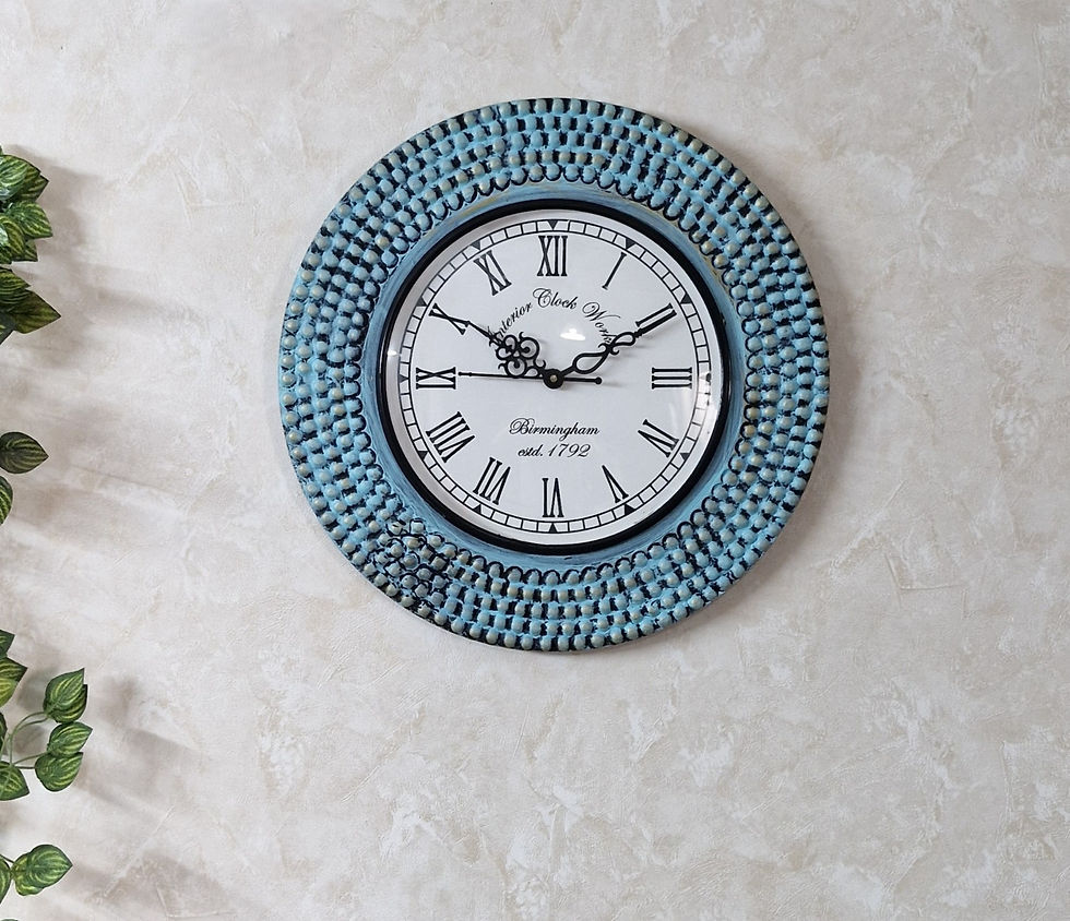 Wall Clock Watch Pattern Mintish Color hand carved